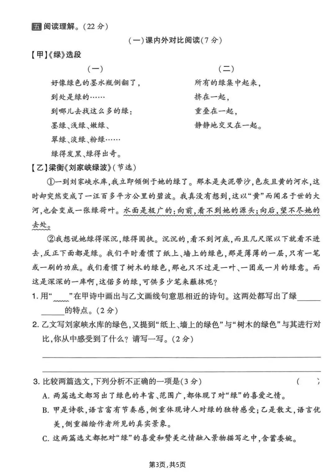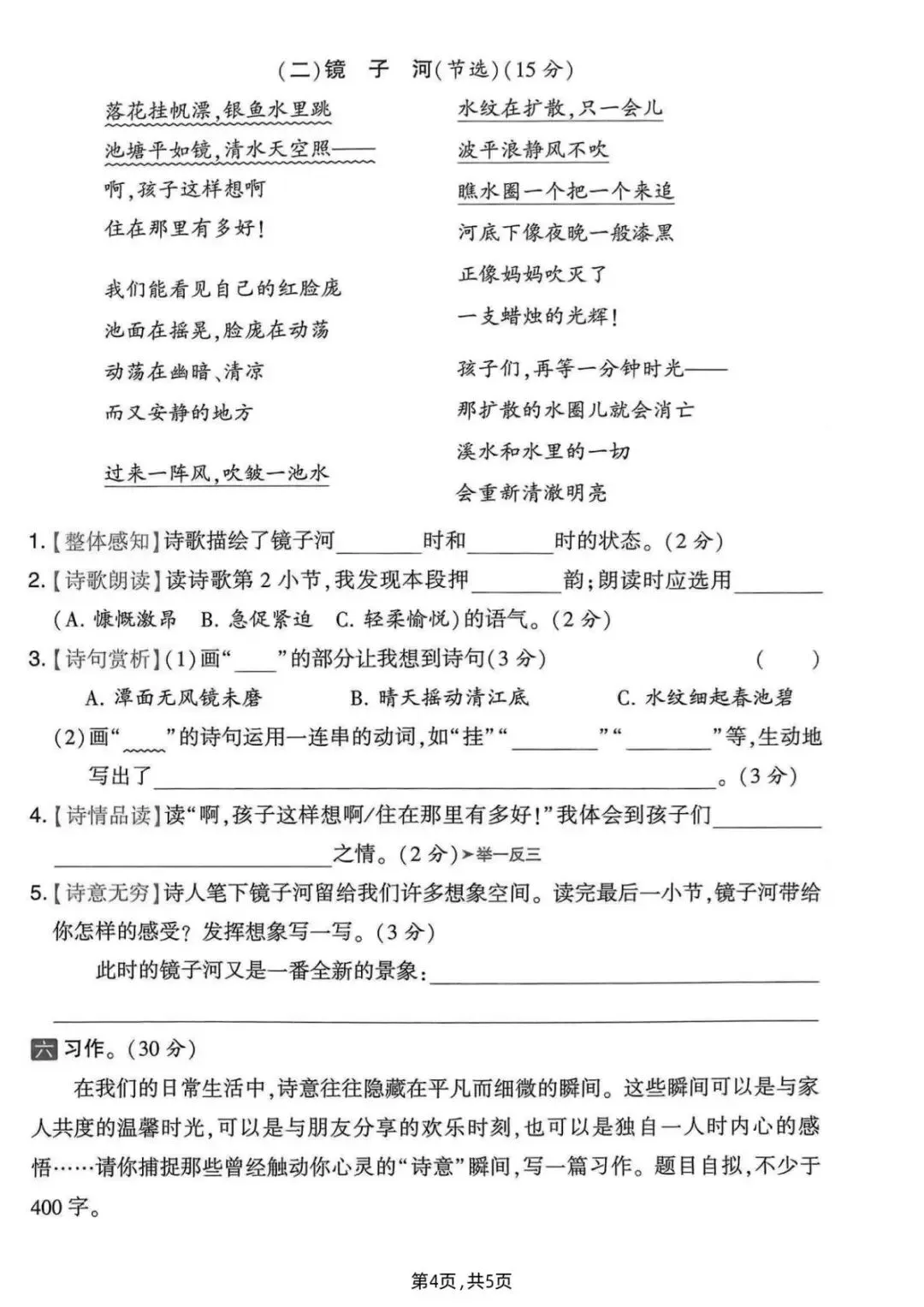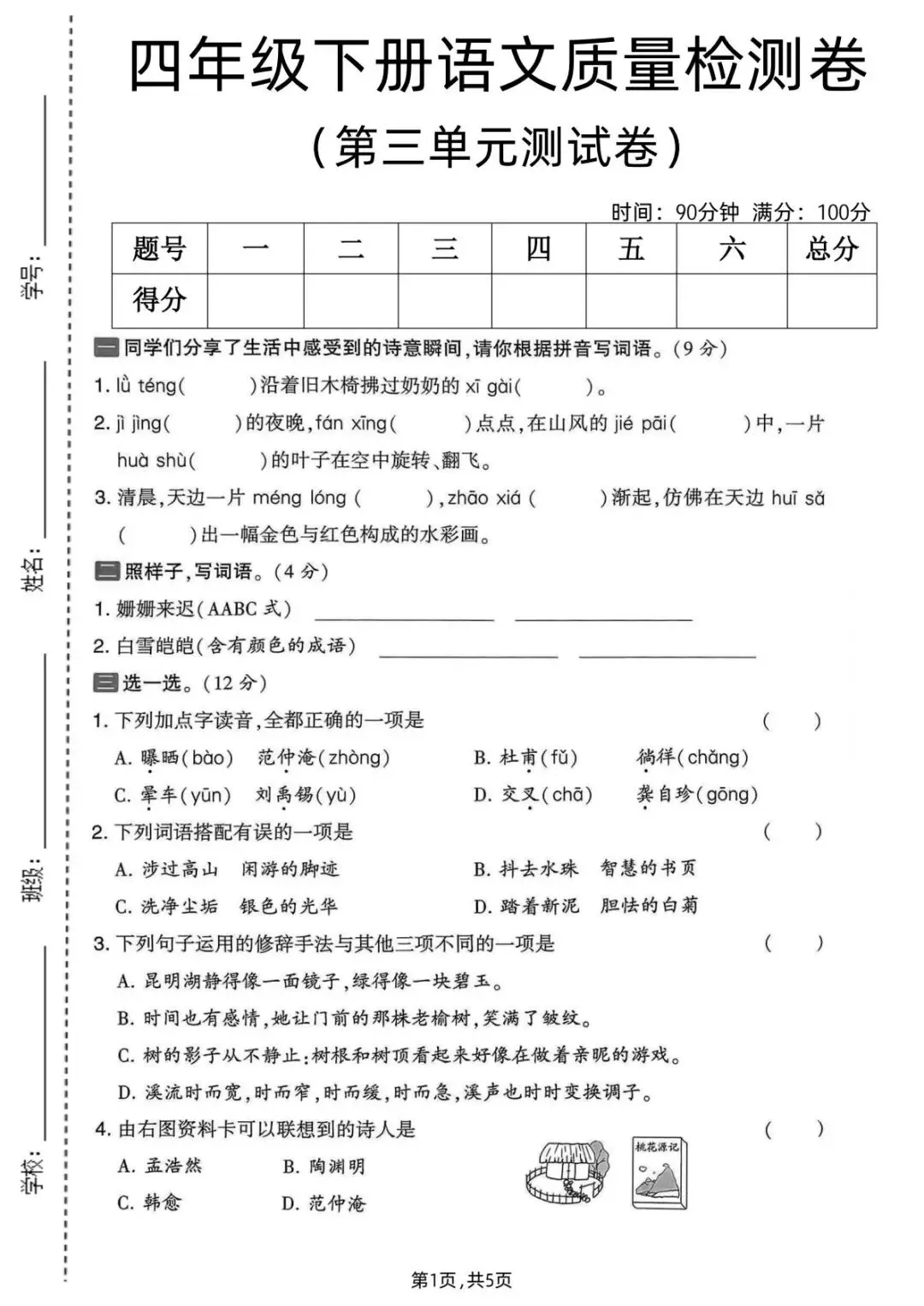 四年级(下)语文 第三单元质量检测卷【可打印】