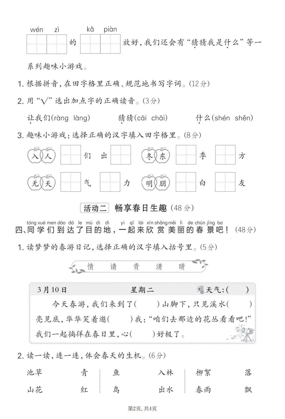 本微信公众账号分享的资源均通过网络等公共合法渠道获得,仅供试用!版权属于原出版机构或影像公司,本资源为电子载体,传播分享仅限于家庭使用与交流心得、参考和辅助购买决策,不得以任何理由在商业行为中使用,若喜欢此资源,建议购买实体产品。文章中的视频及图片均来自网络,版权归原作者或原出版社所有。如有侵权,请及时联系删除。#一年级语文下册第一单元测试卷