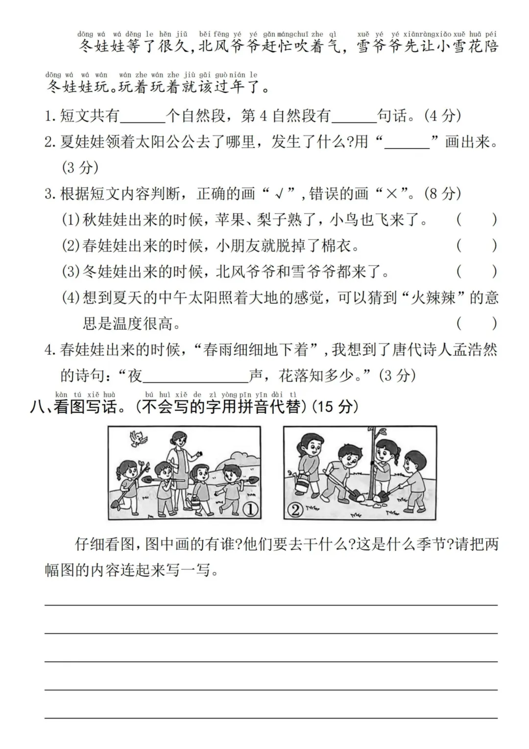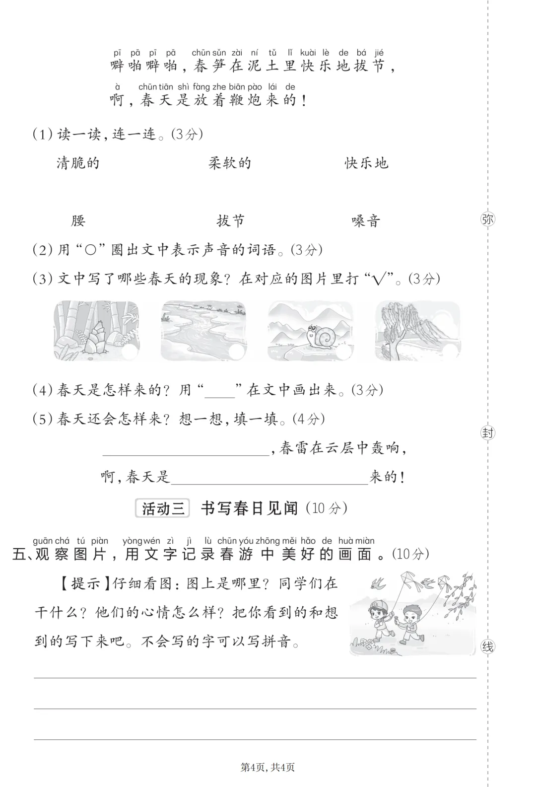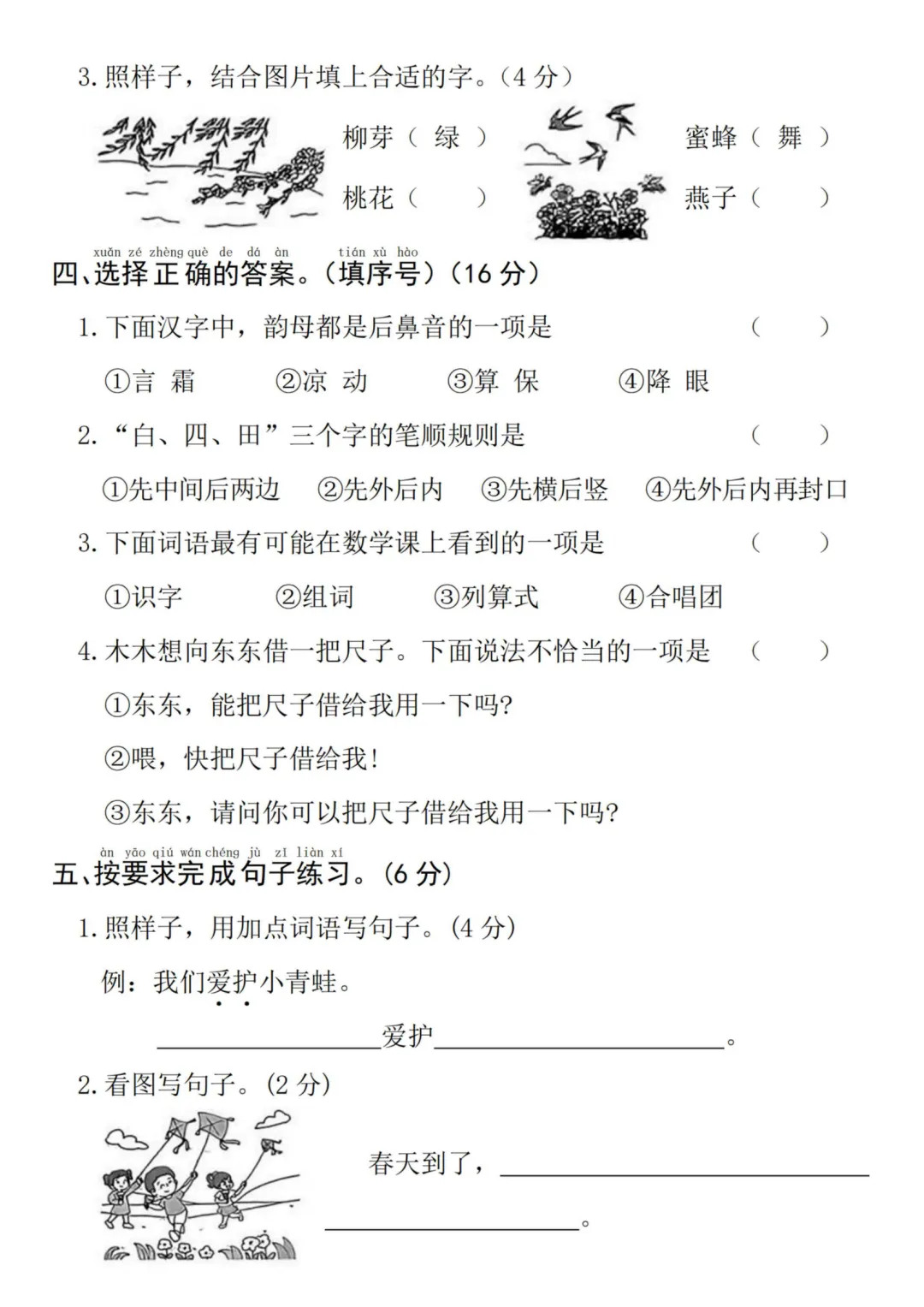 26年人教版一年级下册语文第一单元测试卷,有答案共5套,电子版可打印可下载,这份一下语文第一单元考试卷,精准覆盖了课本第一单元内的重点知识,从生字词的积累到短文理解,全方面检测孩子的学习成果。让孩子清楚自己的薄弱环节,及时查漏补缺。有需要的家长抓紧打印出来给孩子练一练吧!