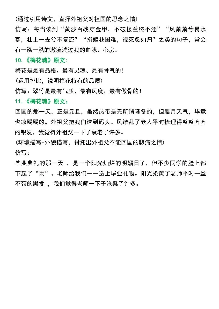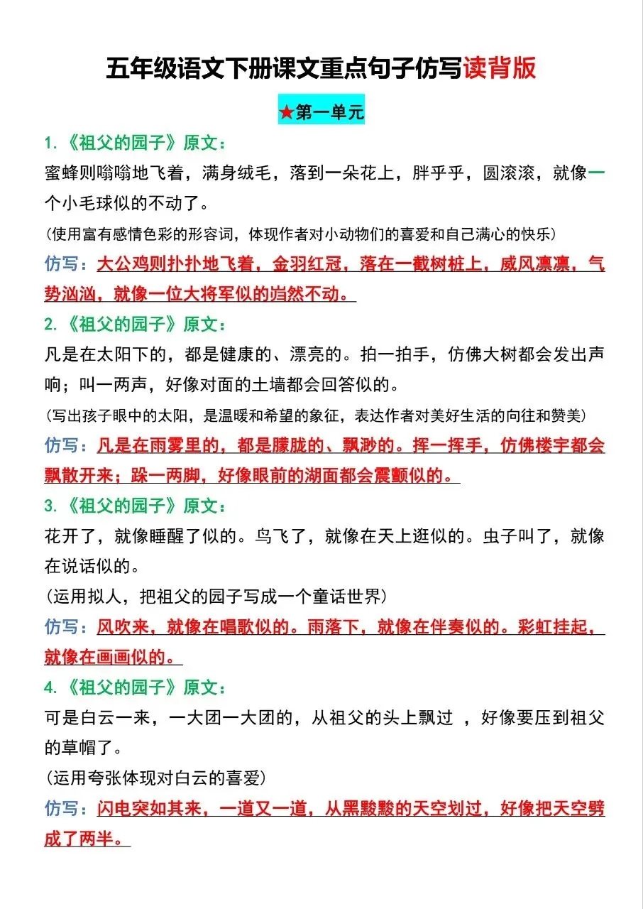 五年级语文下册课文重点句子仿写读背版电子版免费领取