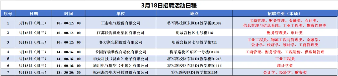 3月18日预计举办线下宣讲会7场