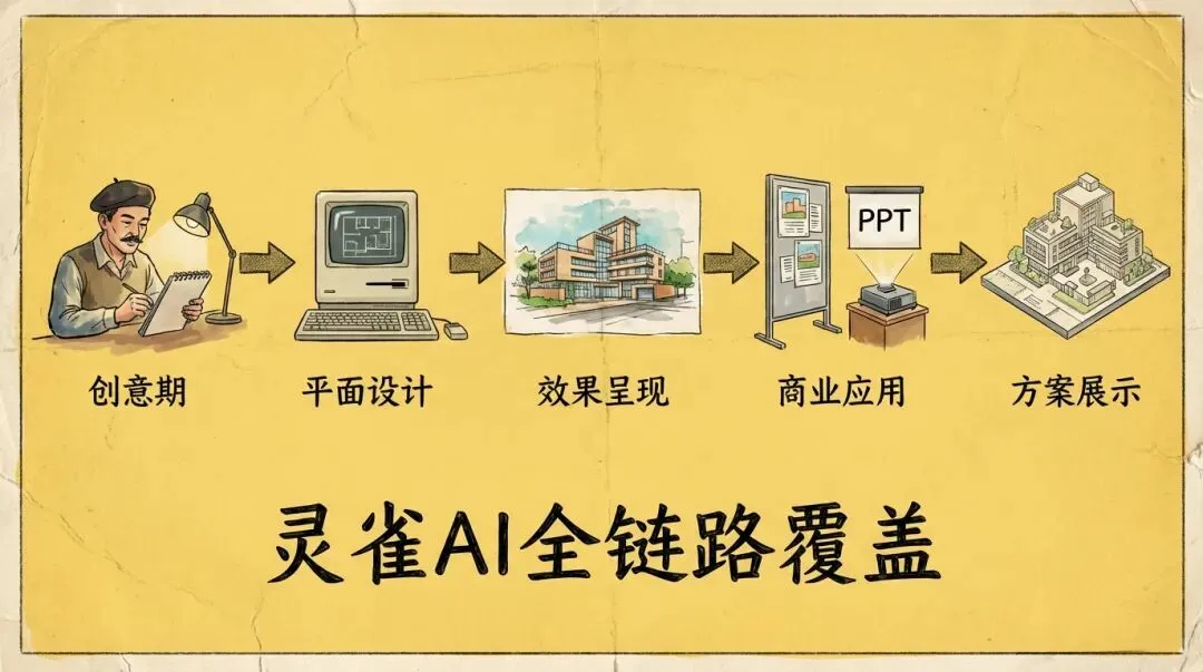 从灵感到交付,灵雀AI覆盖了设计全流程阶段。
