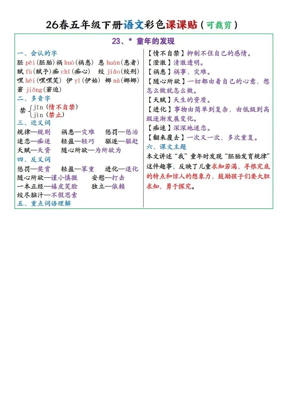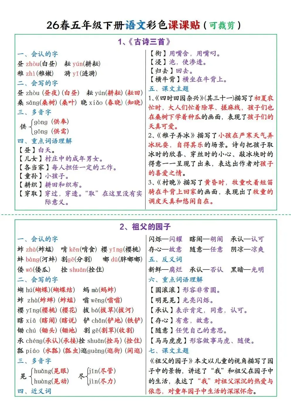26春最新五年级下册语文《课课贴彩色版可剪裁》,完整电子版