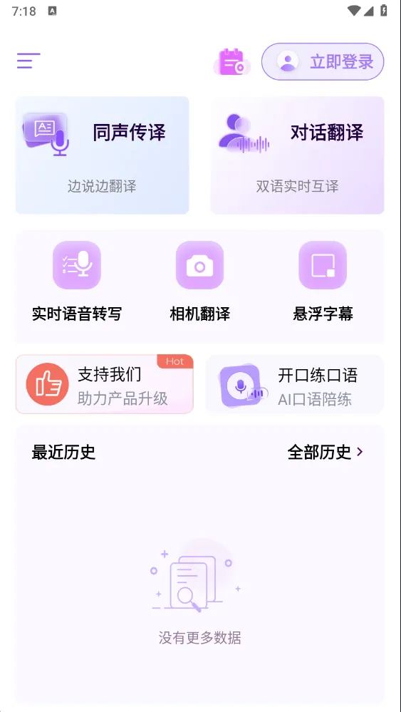 一款实时翻译辅助软件,支持19种主流语言互译,包含普通话、粤语、英语等;能做实时语音与双向对话翻译等操作