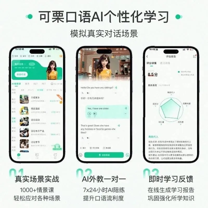 想要高效提升口语,其实只需要抓住3个核心:一是开口的频率,别怕说错,说得越多熟练度提升越快;二是反馈的精准度,错了有人及时纠正,才不会把错误发音和表达练成本能;三是场景的实用性,学的内容刚好是你要用的,才能快速把知识转化为能力。