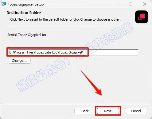 5.选择软件安装路径,建议和教程中的保持一致,本例安装到D盘(将路径地址中的首字符C改为D表示安装到D盘,安装路径不要出现中文),点击“Next”