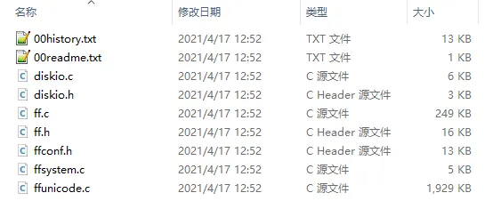 • 00history.txt:介绍了FatFs的版本更新情况。