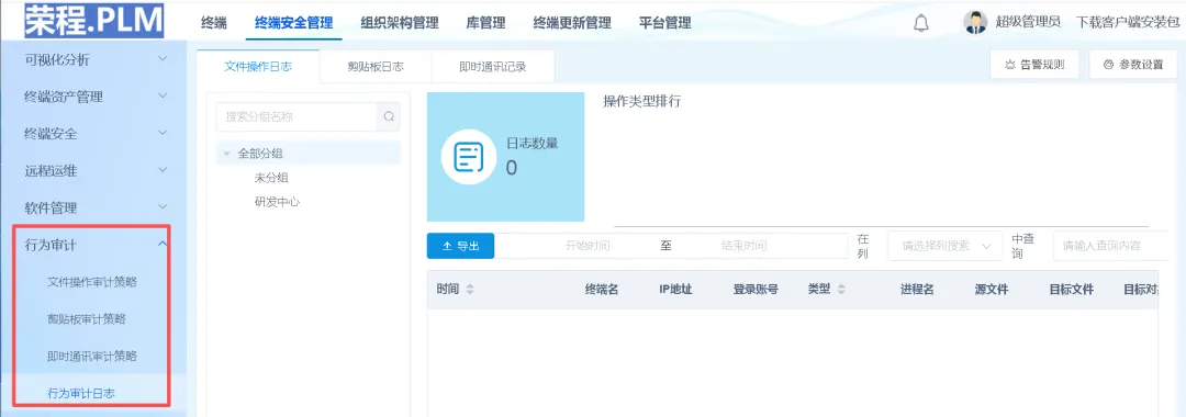 文件操作审计:记录文件的创建、修改、删除、复制等操作,甚至支持屏幕录像回溯。