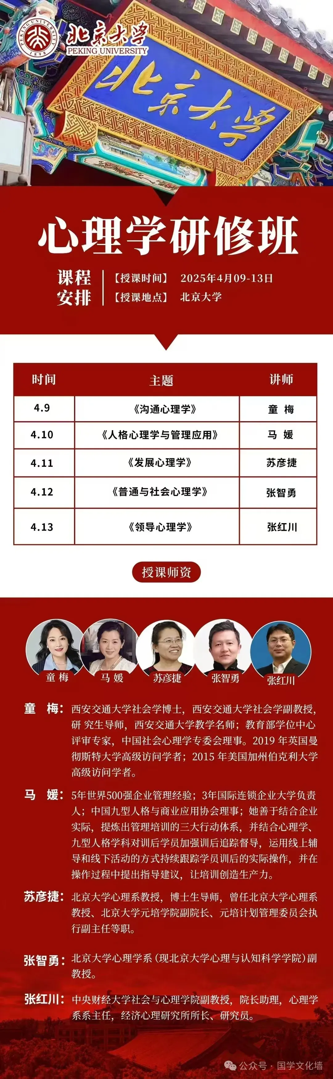 北京大学心理学研修班学制:5天(北大校内上课)学费:9800元/人