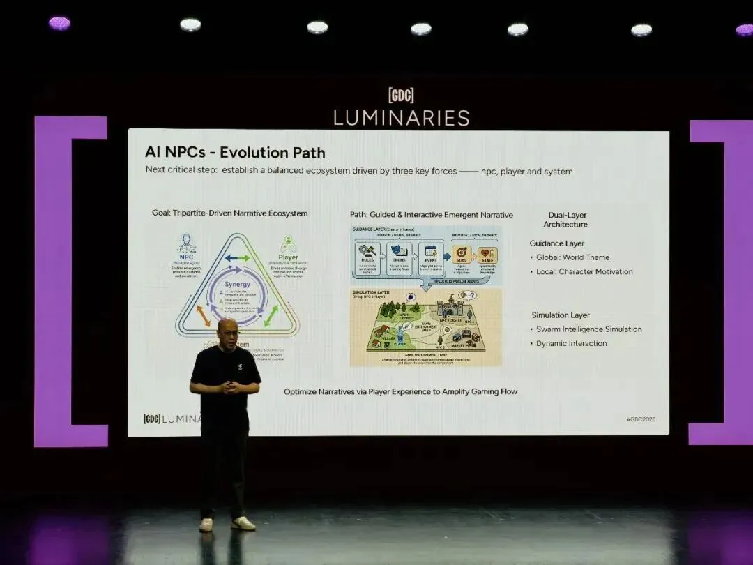 这场演讲没有停留在空泛的概念层面,而是沿着“AI 在行业中的位置—腾讯在生产中的实践—AI NPC 的演进—长期运营与未来判断”这条线,给出了一套非常清晰的方法论。以下内容依据演讲原意整理,尽可能保留演讲中的核心信息与案例表达。