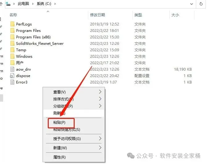 13、打开本地C盘,再右键文件夹的空白处,点击【粘贴按钮】
