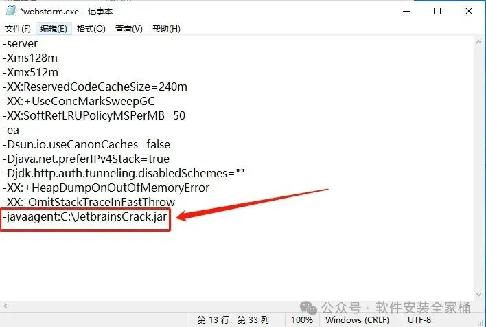 18、在最后一行加上:-javaagent:C:\ JetbrainsCrack.jar
