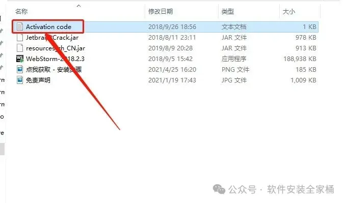 28、回到WebStorm 2018文件夹,找到【Activation code】文件,右键【打开】它