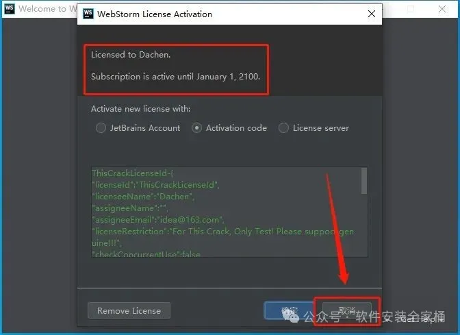 32.如下图所示,显示软件到期时间为2100年,说明软件已激活成功,点击【取消】。