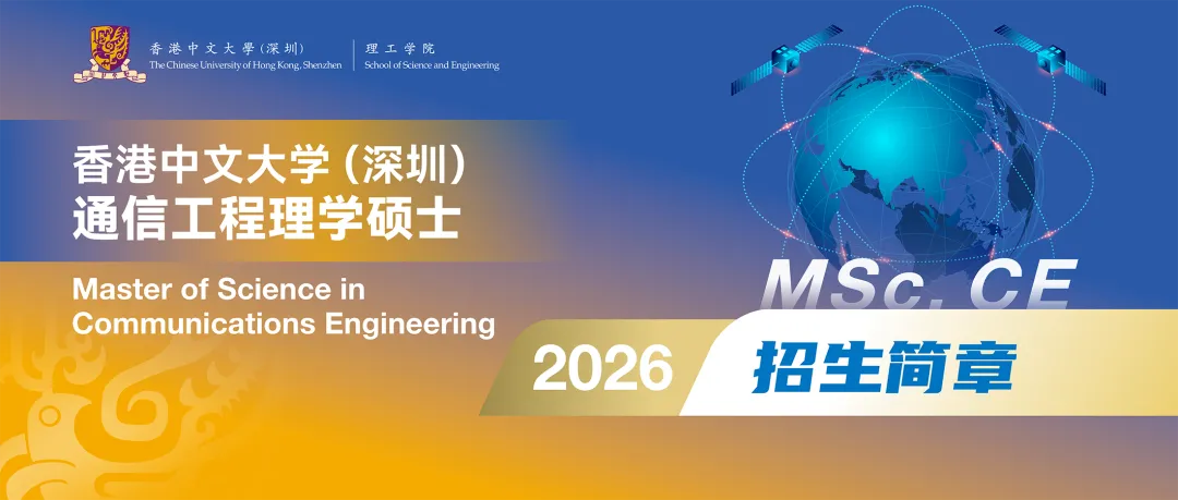 香港中文大学(深圳)理工学院通信工程理学硕士项目 (MSc. CE) 是围绕通信工程领域开设的为期两年的全日制硕士项目。项目课程涵盖网络智能、下一代通信网络、无线通信、机器学习、物联网、云计算、边缘计算、大数据系统和分析处理等多种新兴热门技术领域知识,同时在每个学期设立循序渐进的研究项目,引导学生将专业知识娴熟应用于科学研究和实践中,充分发挥自主能动性与创新思维。毕业生将成为兼具行业理论与实践技能的专业型复合人才,以开拓的国际视野和扎实的实操技能快速适应瞬息万变的行业形势与市场需求。