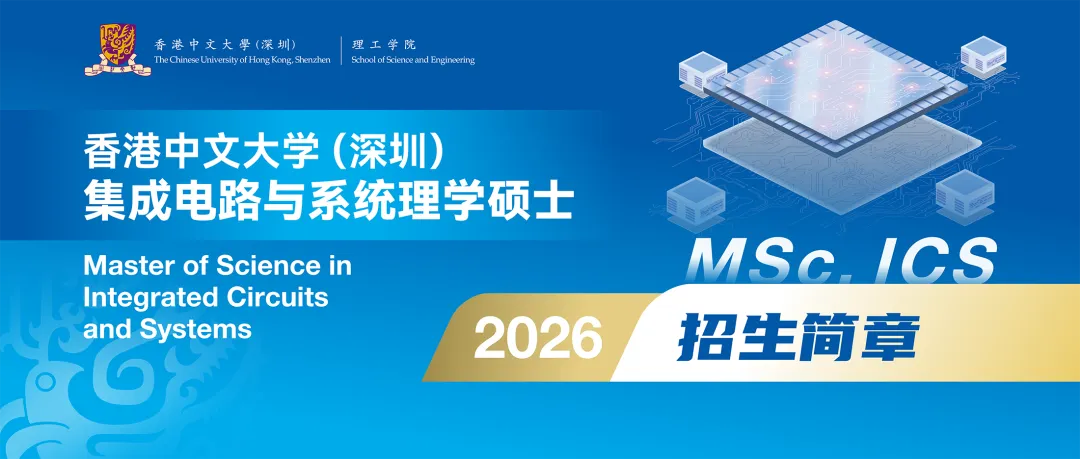 香港中文大学(深圳)理工学院集成电路与系统理学硕士项目 (MSc. ICS) 是围绕集成电路领域开设的为期两年的全日制硕士项目,旨在满足粤港澳大湾区乃至全国对集成电路产业专业型人才的需求。项目课程涵盖半导体物理和集成电路基础知识,并开设了围绕通讯集成电路设计、测量实验和微纳加工技术为主的实践教学课程,旨在培养学生电子器件设计、芯片设计、设计自动化、制造封装和测试的必要知识和技能。