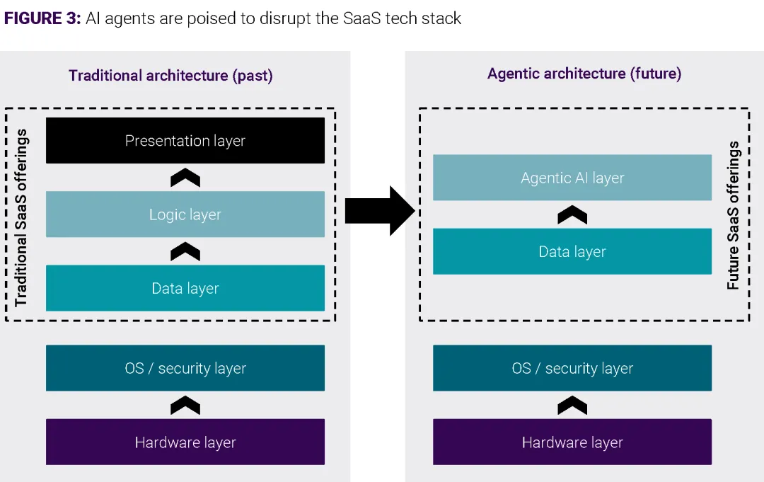 然而,随着AI的普及,这个前提被打破了。许多SaaS公司的估值大幅缩水,净收入留存率(NDR)下降。软件正在从长期持有的“资产”转变为用完即弃的“耗材”。