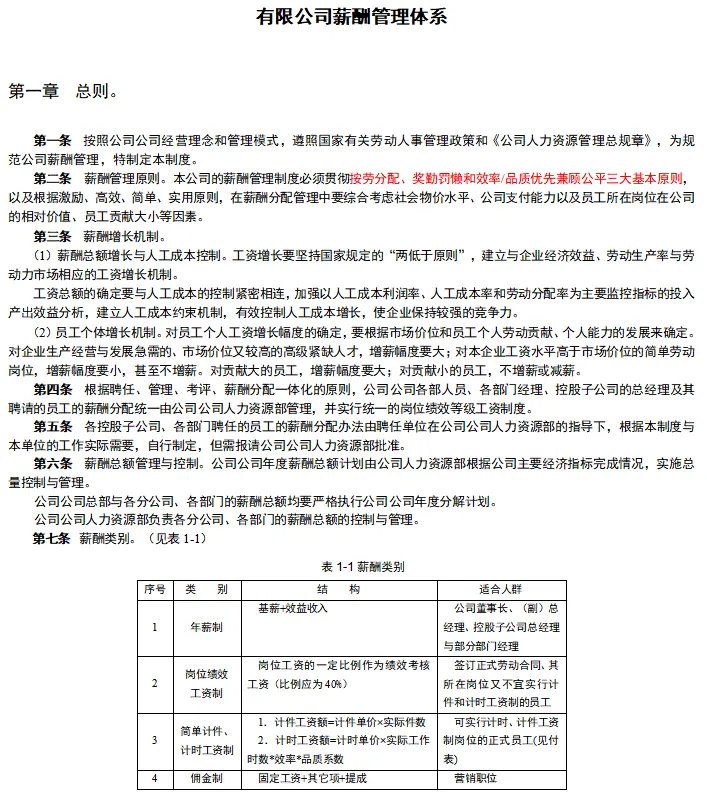 薪酬体系方案