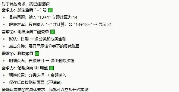修复后,APP能用了。经过几轮优化,我让扣子增加了”其他”分类,调整了图表颜色,还加上了每日明细页面。