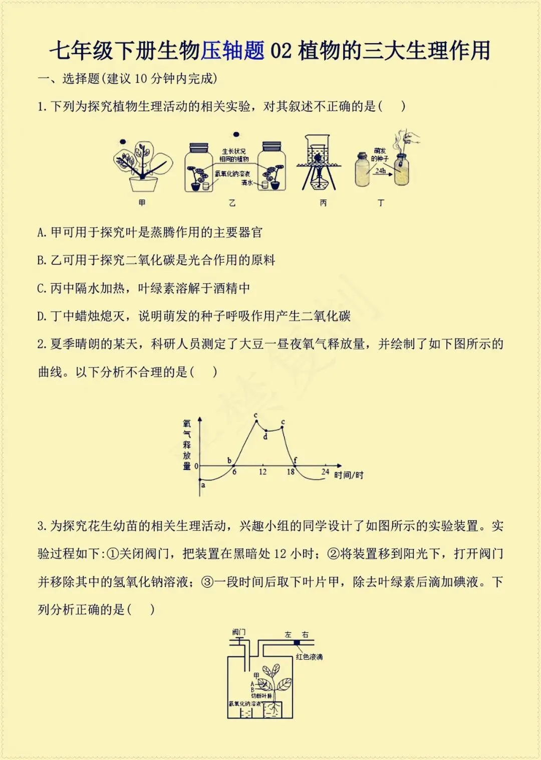 今天老师给大家整理了:七年级下册生物压轴题知识点总(电子版可打印)