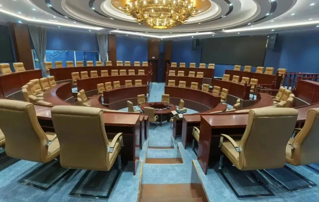 会议场所设计庄重大气,设施精良,氛围沉稳内敛,契合政务活动所需的正式感。