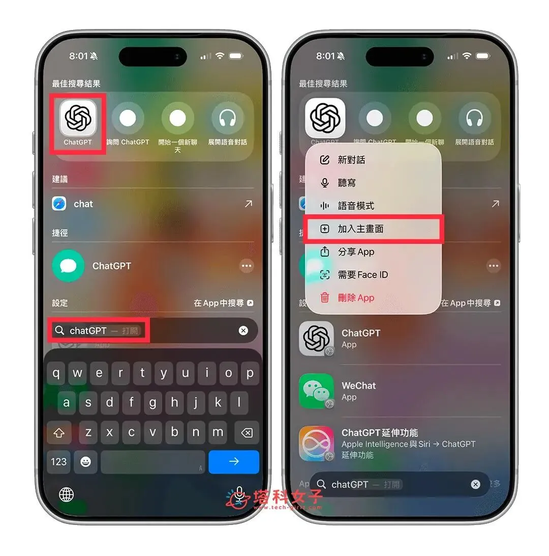 首先第一个比较快的方法是,你只要在iPhone 桌面向下滑,在搜寻列上输入你想加回主画面的该App 名称,然后在上方的搜寻结果中,长按该App,点选「加入主画面」,这样该App 就会重新加回iPhone 主画面了!