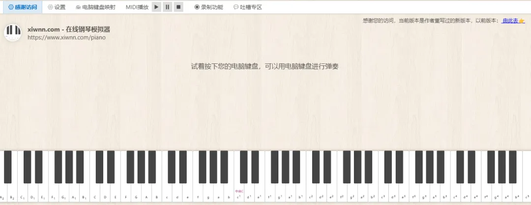 在线钢琴|88键全键盘演奏神器!电脑键盘映射+录制+调音器,附赠魔性划线小游戏