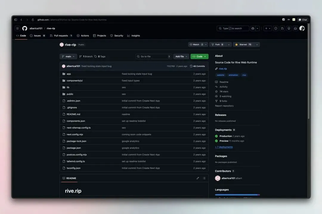 rive-rip 开源项目: https://github.com/albertcai101/rive-rip
