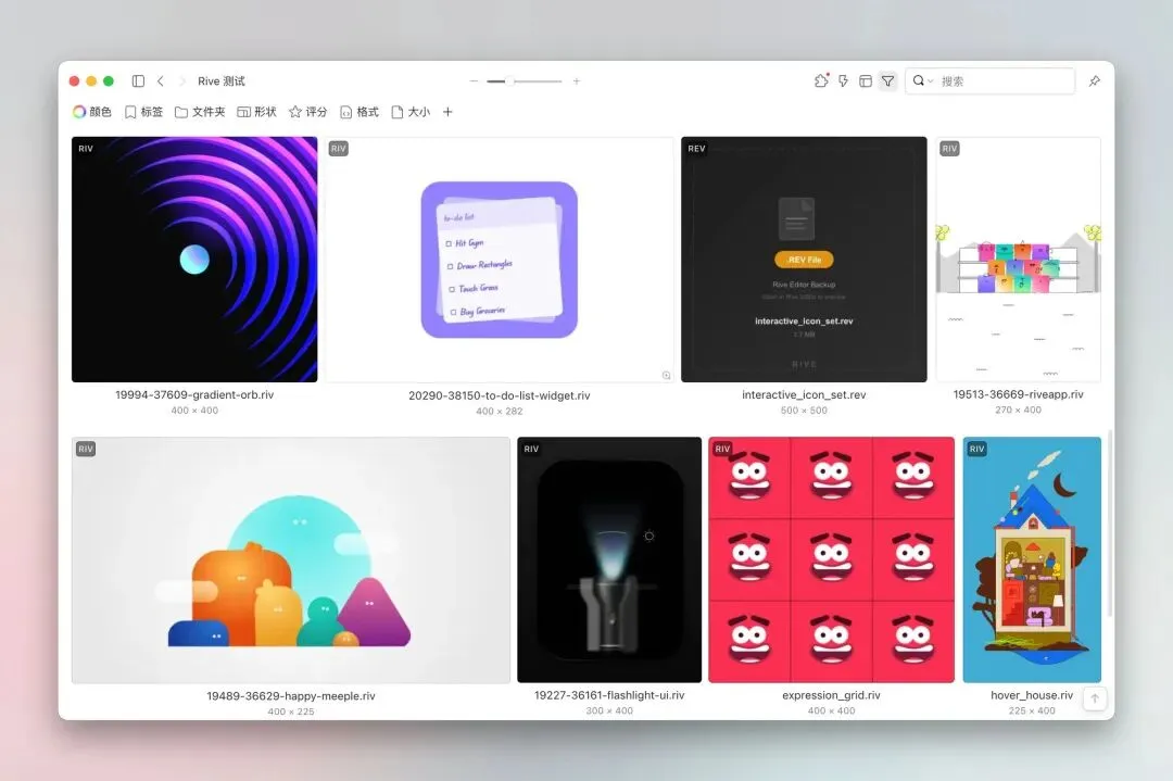 作为 Eagle 的重度用户,我最近越来越多地使用 Rive 制作动画,但 Eagle 不支持 Rive 文件预览。导致想用 Eagle 管理.riv 文件的我,只能通过文件名去区分。