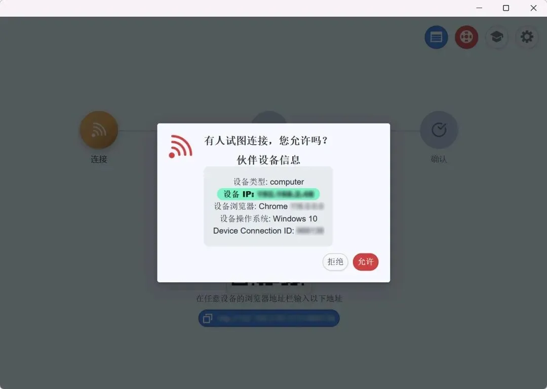 连上后电脑会弹窗,点【允许】就行!