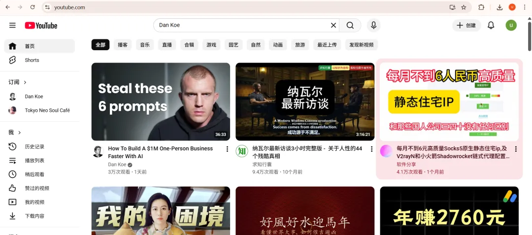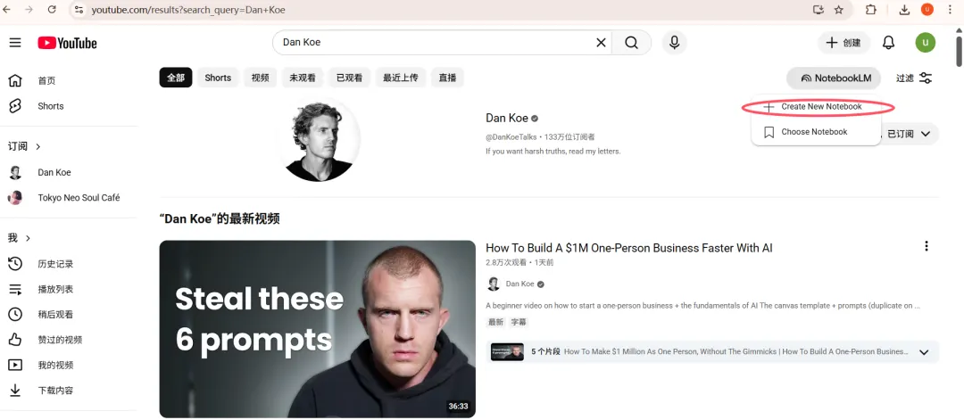 4、打开搜索-Dan Koe,右边会有一个NotebookLM图标,