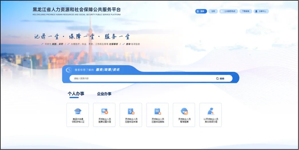 新开办的企业或之前未注册过黑龙江省人力资源和社会保障公共服务平台的单位,可按照下列步骤注册用户,法人登录或者授权办事人登录后使用服务平台办理社会保险业务。