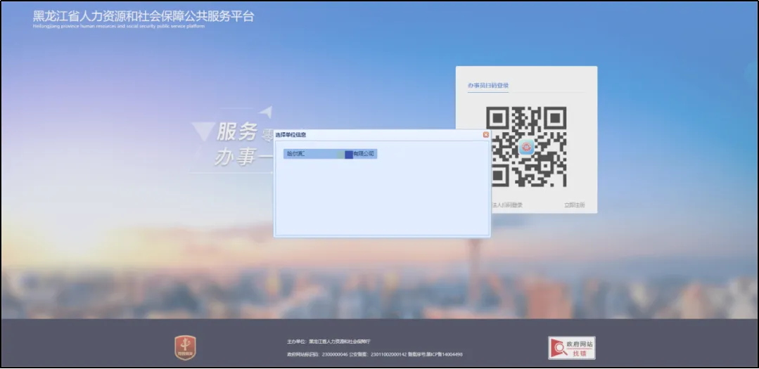 若扫码者为多家企业办事员,扫码登录后会弹出选择单位信息提示框,点击需要进入的单位名称,即可登录该企业。