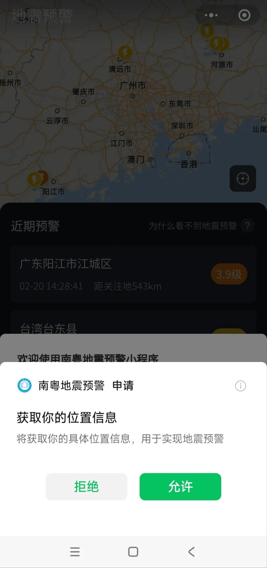 提前设置好地震预警防患于未然,其实获取地震预警信息非常简单,不需要下载任何软件,不需要注册账号,只需要你在微信里关注广东省地震局官方推出的“南粤地震预警”小程序。