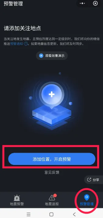 第三步:进入预警管理页面,成功“添加位置,开启预警”