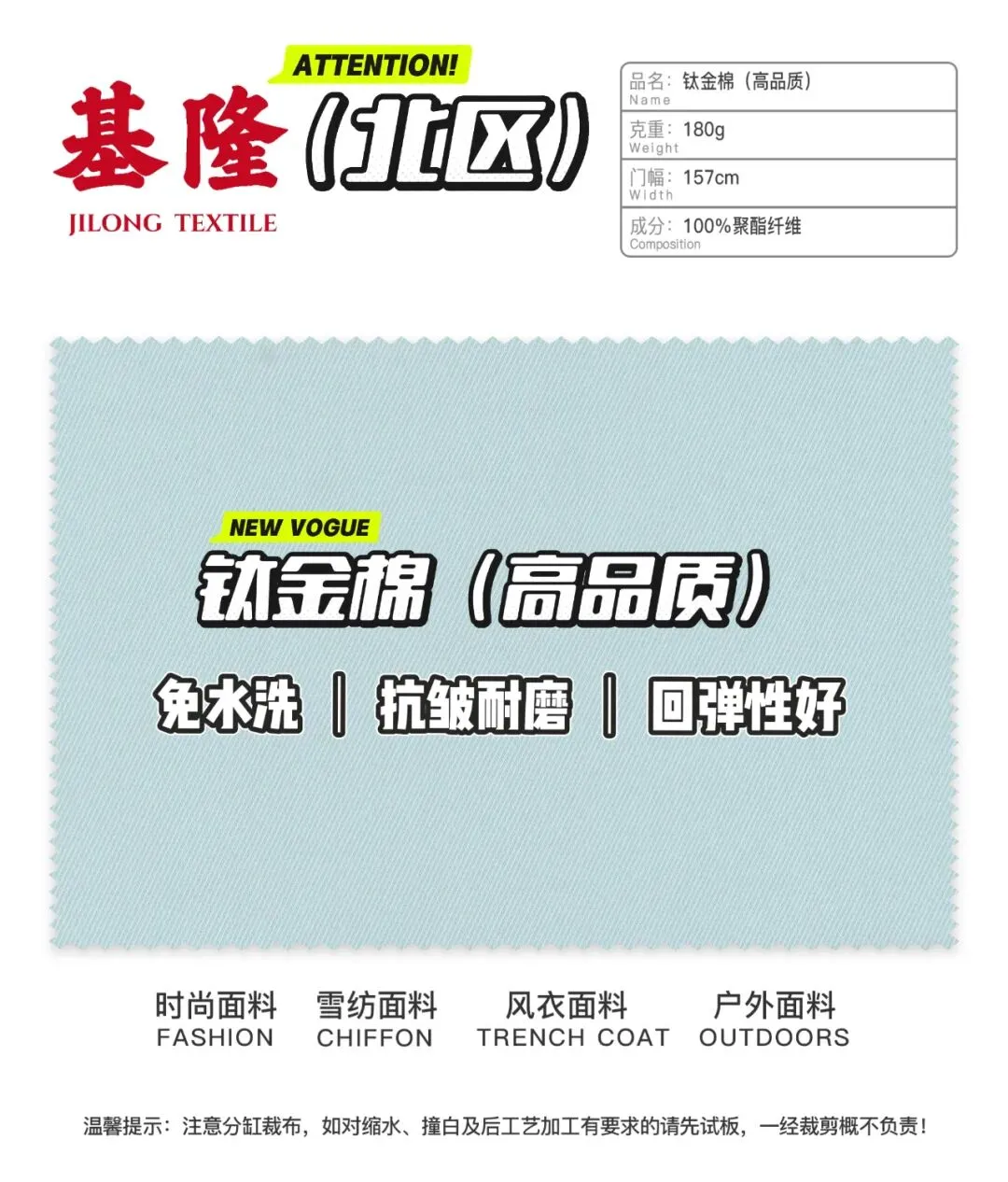 适用范围:裤料、半身裙、休闲外套、时尚套装等
