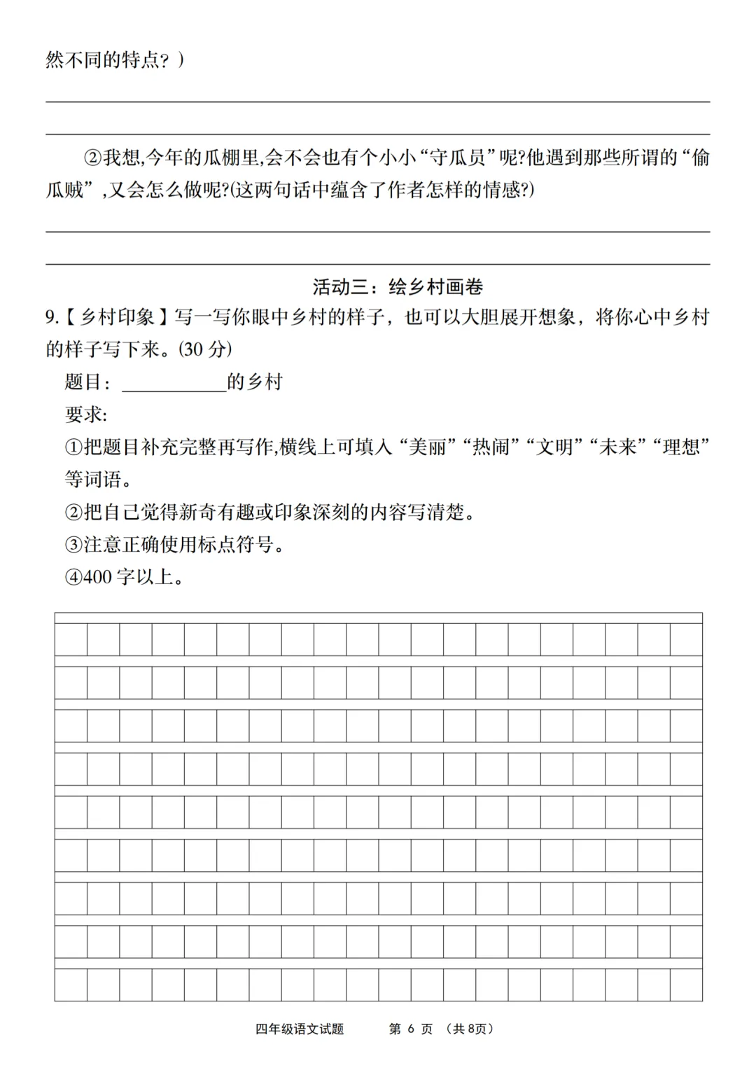 本微信公众账号分享的资源均通过网络等公共合法渠道获得,仅供试用!版权属于原出版机构或影像公司,本资源为电子载体,传播分享仅限于家庭使用与交流心得、参考和辅助购买决策,不得以任何理由在商业行为中使用,若喜欢此资源,建议购买实体产品。文章中的视频及图片均来自网络,版权归原作者或原出版社所有。如有侵权,请及时联系删除。#四年级语文下册第一单元测试卷