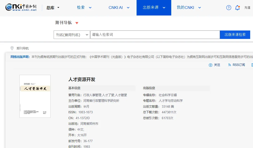 《人才资源开发》省级;知网
