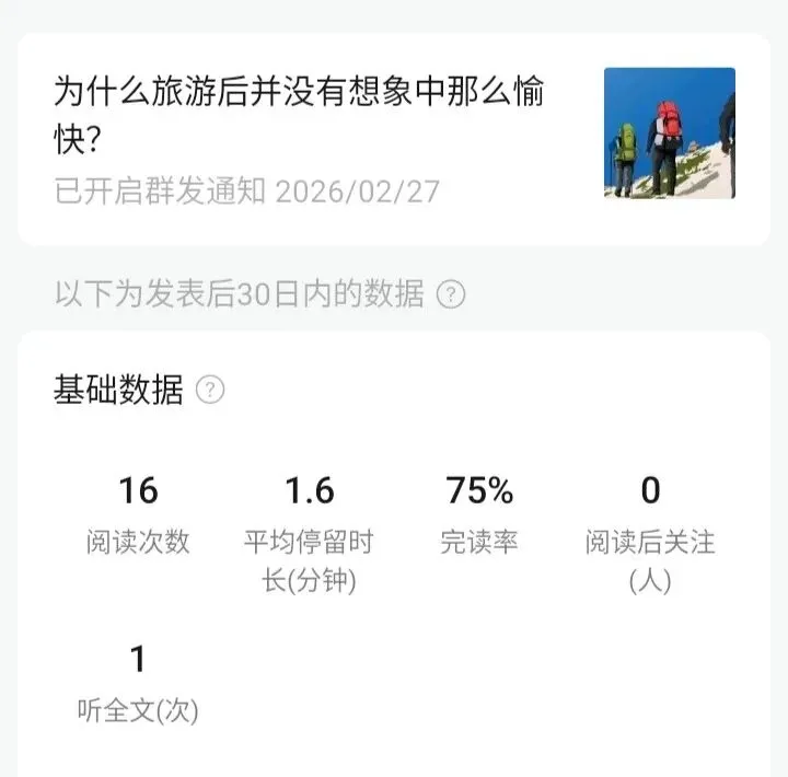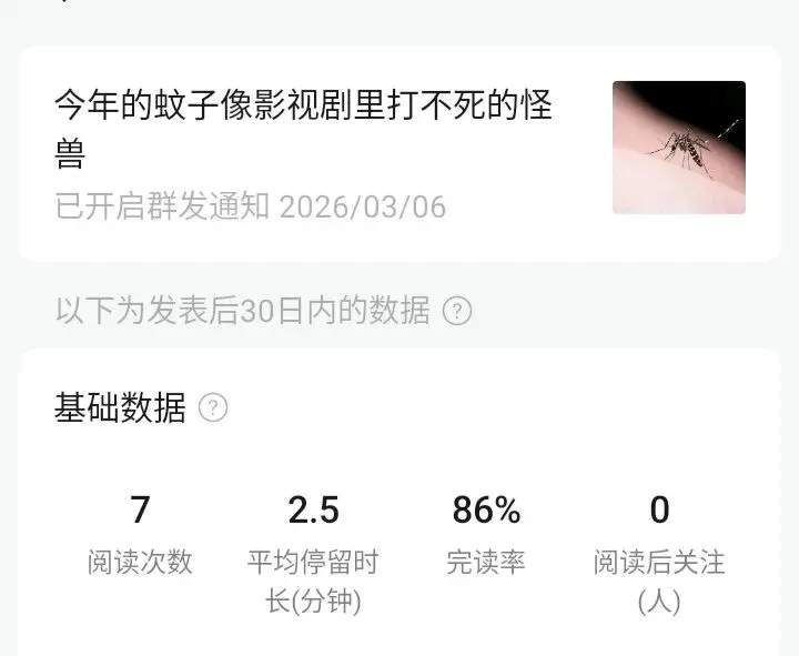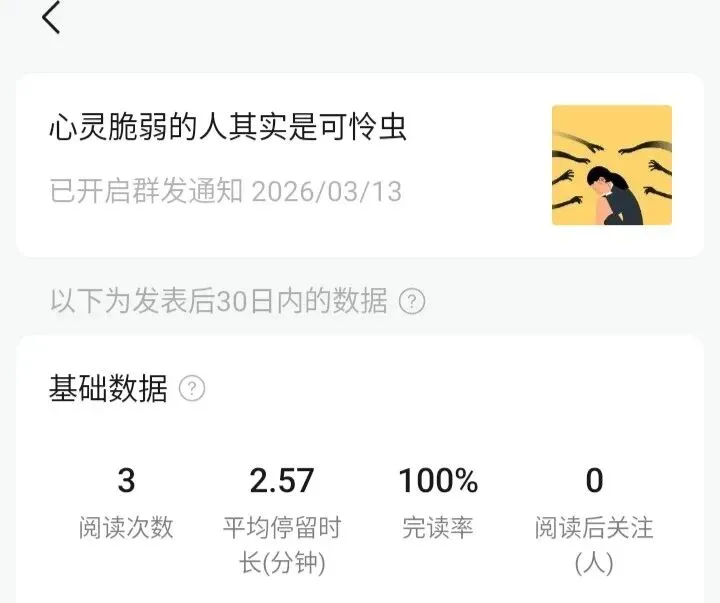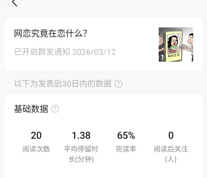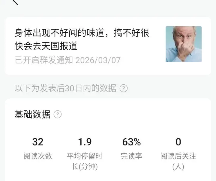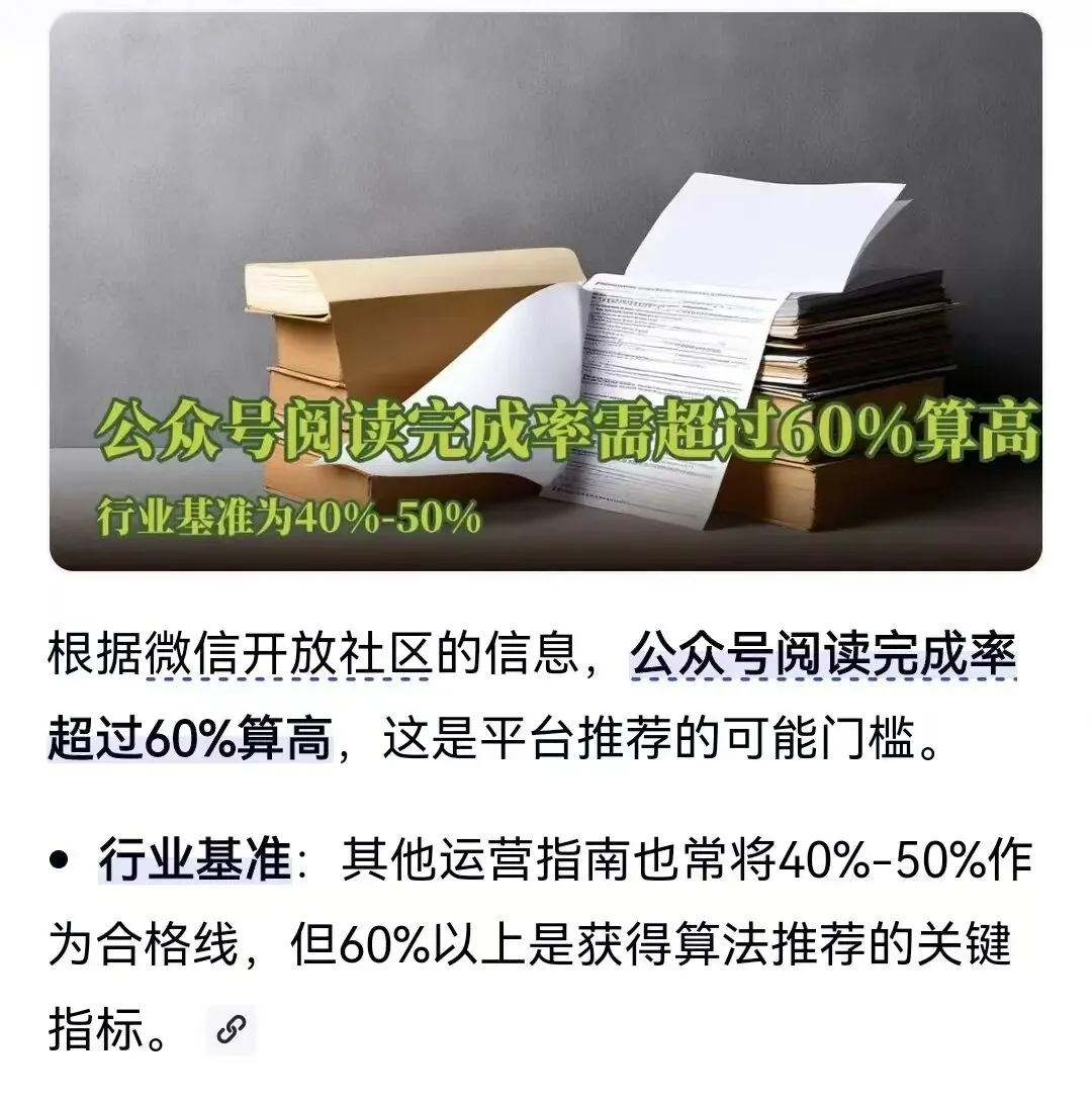 据网络AI搜索结果得知:公众号文章完读率60%算是高完读率,而行业基准:40%至50%算是合格。
