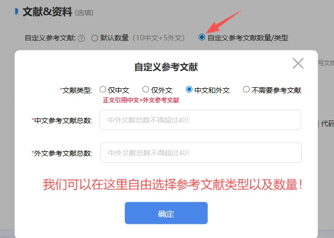 咱们只需要选择好对应的文献类型和数量,以及投喂好真实的相关资料就可以啦!