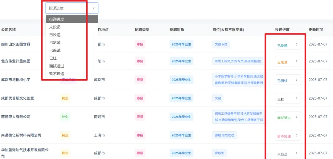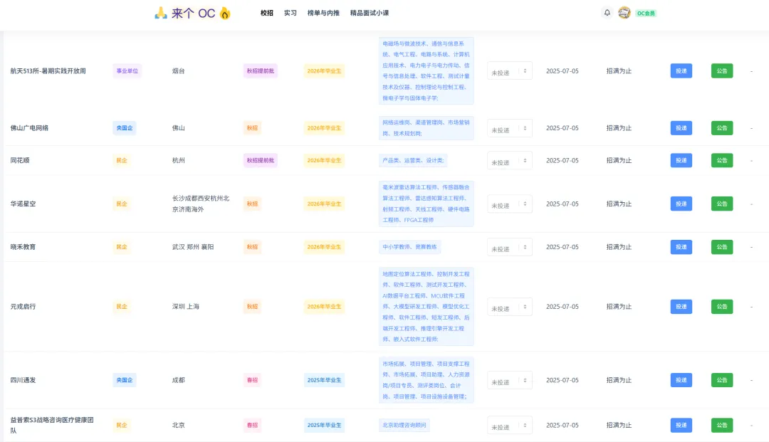 我们的 OC 网站都支持,比如 支持投递进度管理 ,相比 传统文档表格 极大方便!!