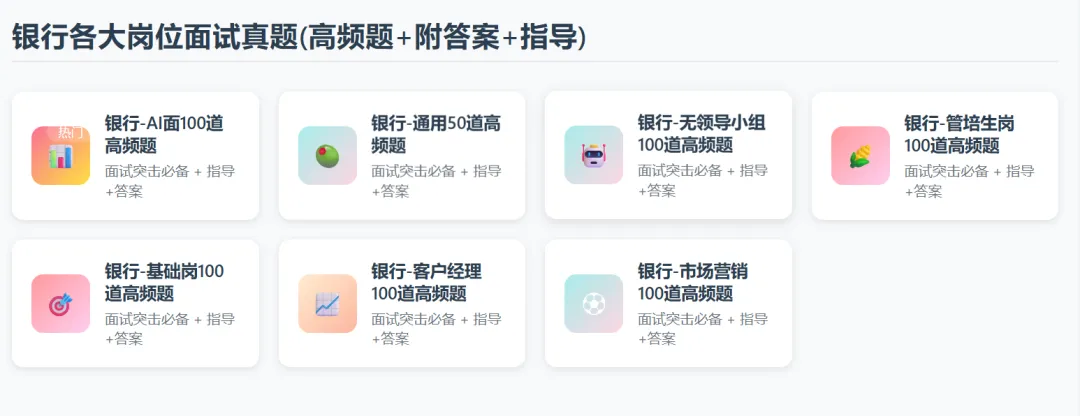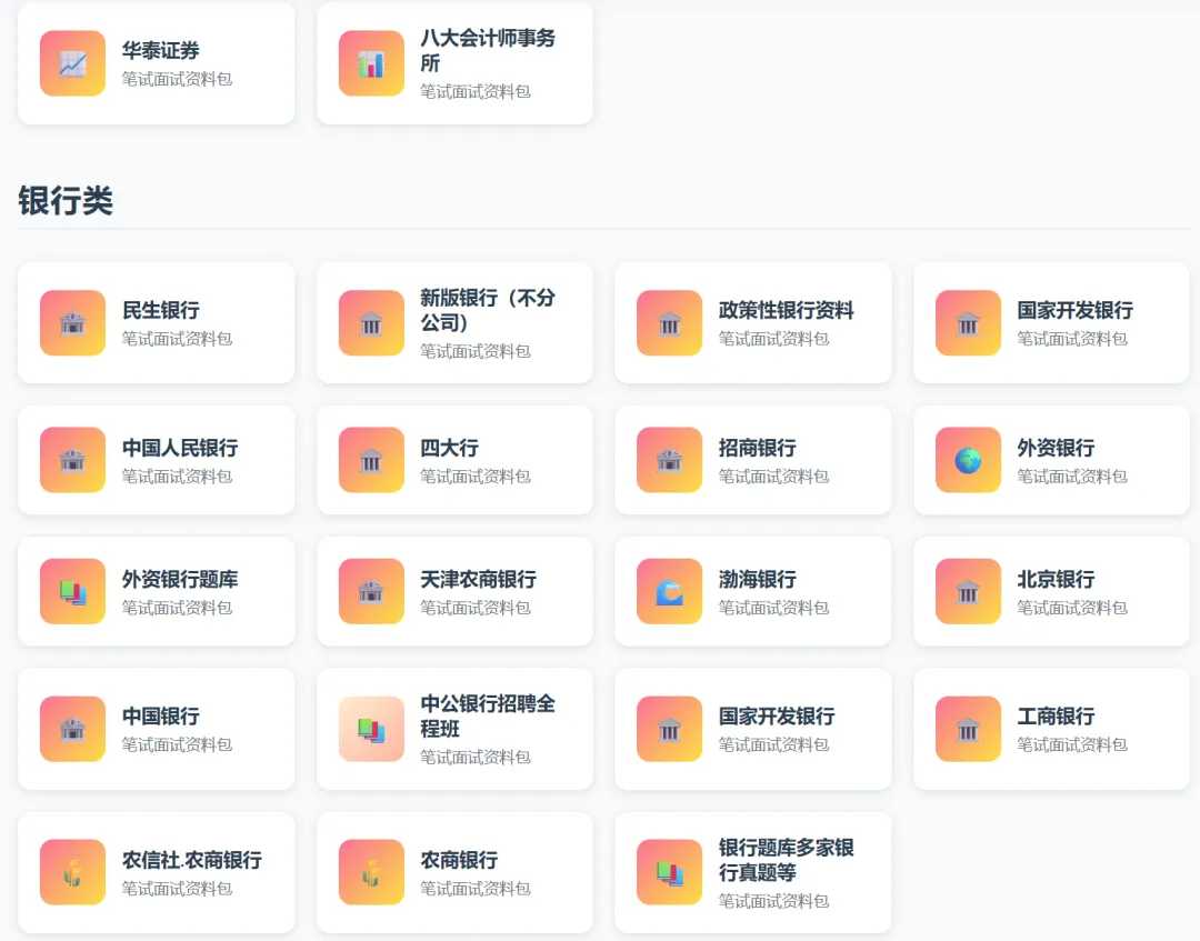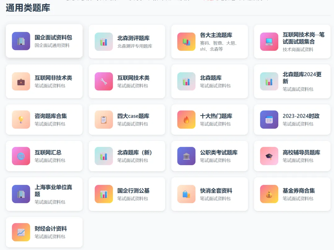 网站上线了全网质量最高、最全的笔试面试资料包,包括了民企、央国企、银行 !