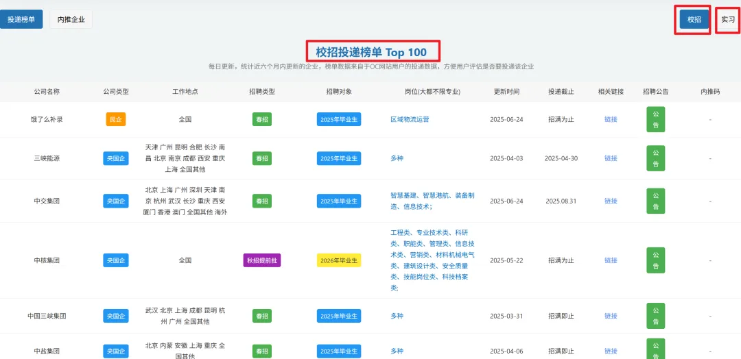OC 网站,致力于更新 全网最新 企业的招聘信息,春秋招火热期间,每天都更新近百家企业信息,每周更新近 500+ 企业信息,解决大家企业难找的问题。