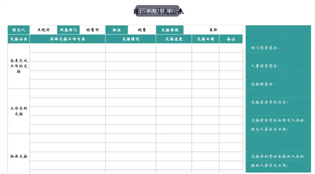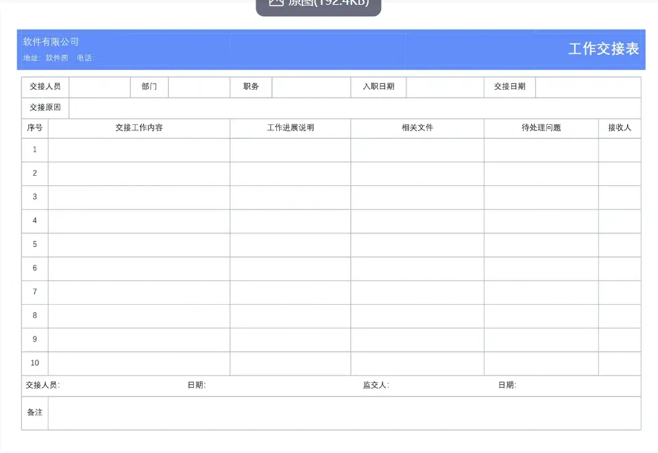 110+《工作交接表模板》Excel电子版,可免费【保存下载】编辑打印