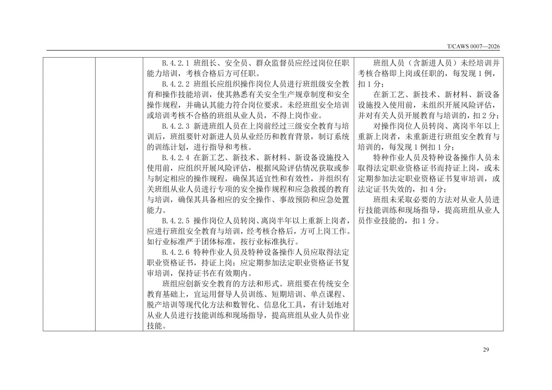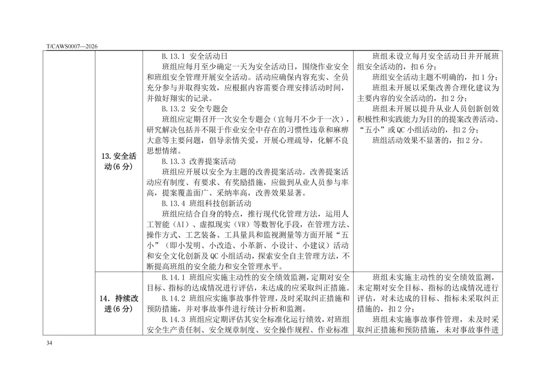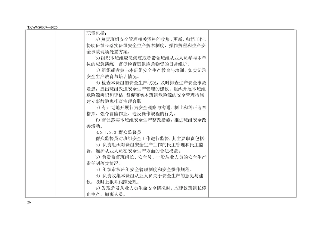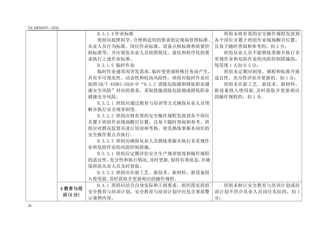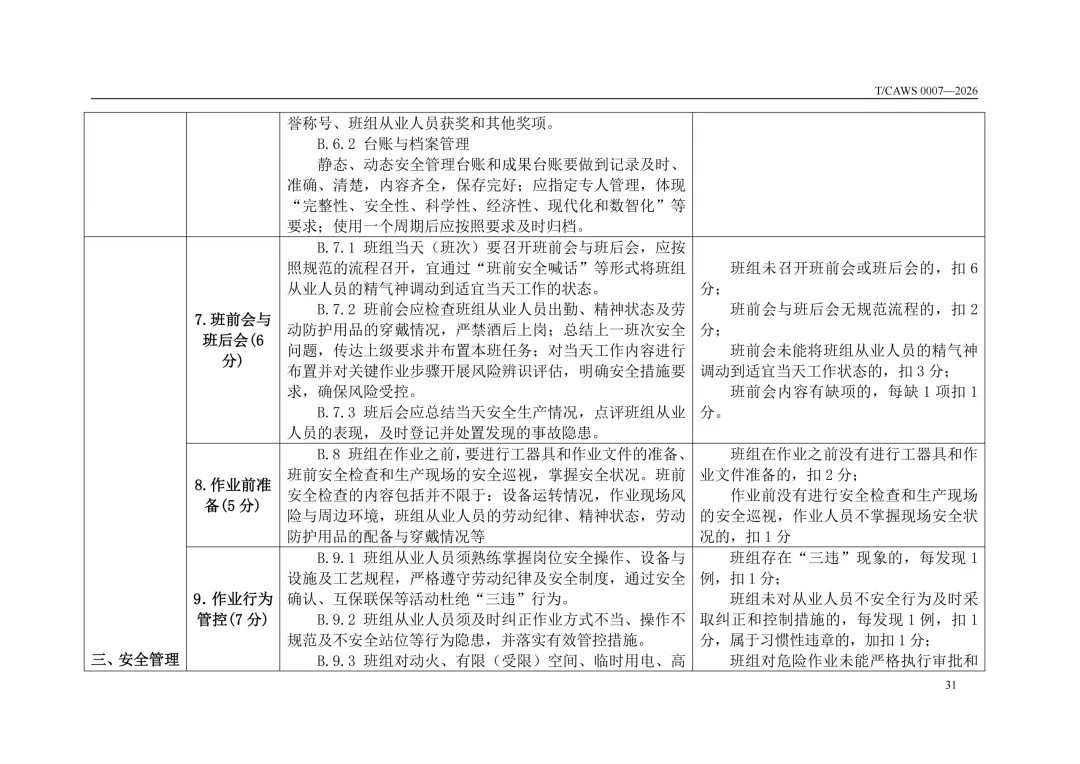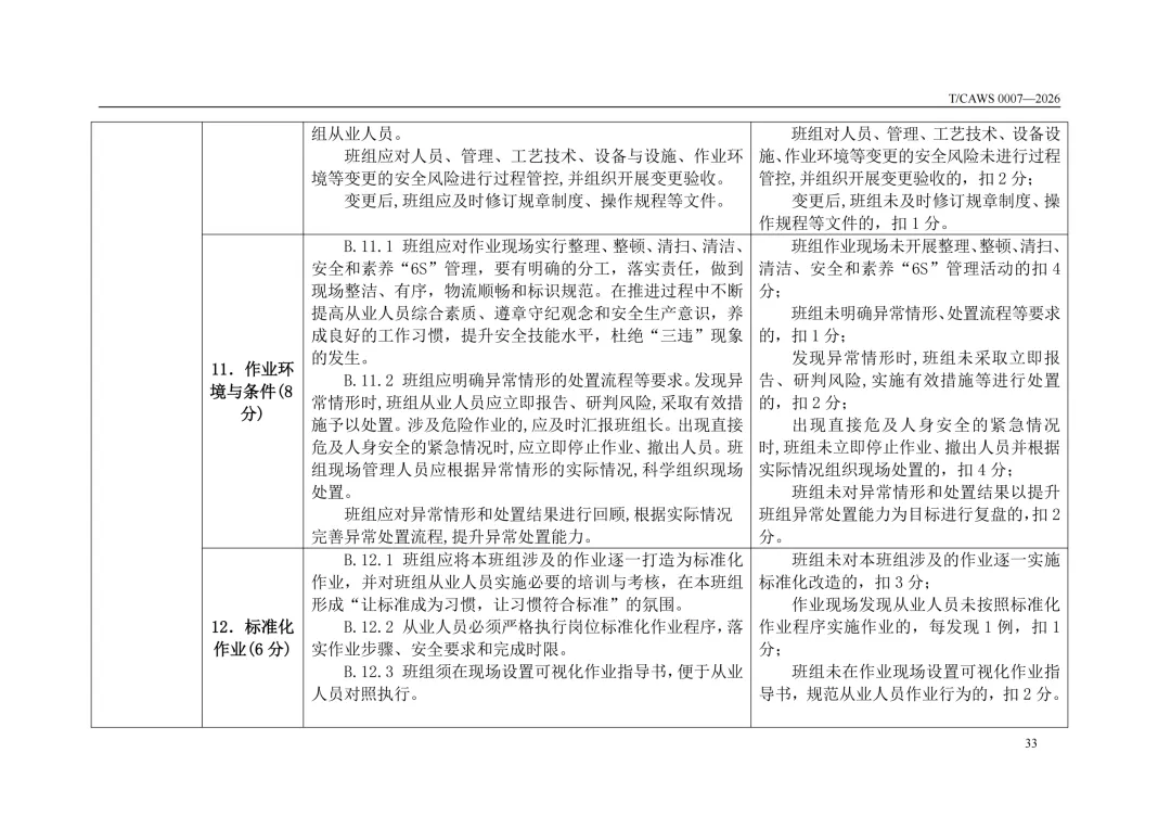 免费下载!TCAWS 0007―2026 安全管理标准化班组评定通用要求