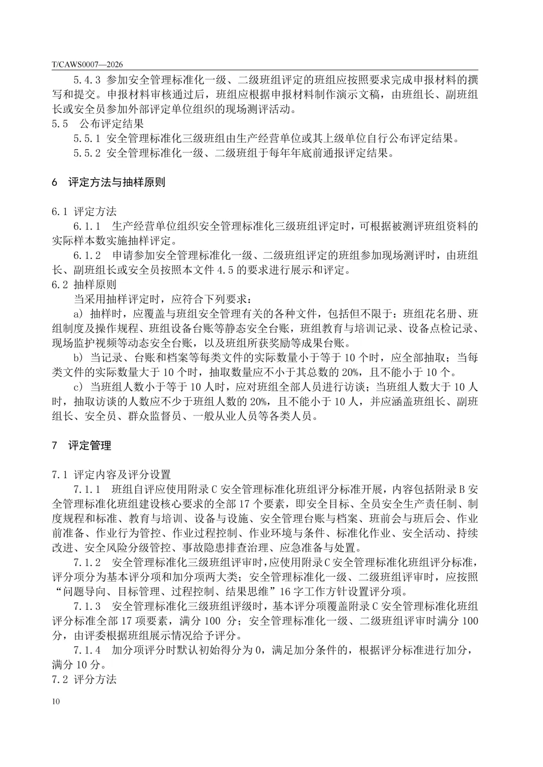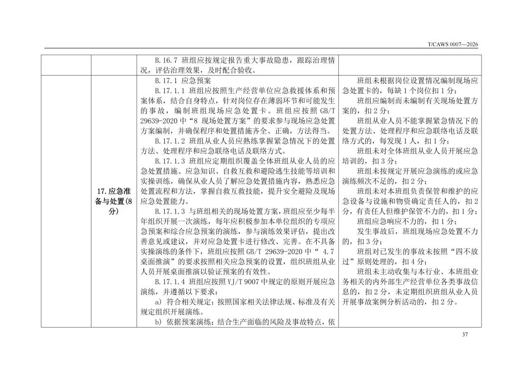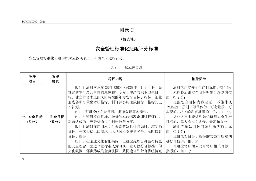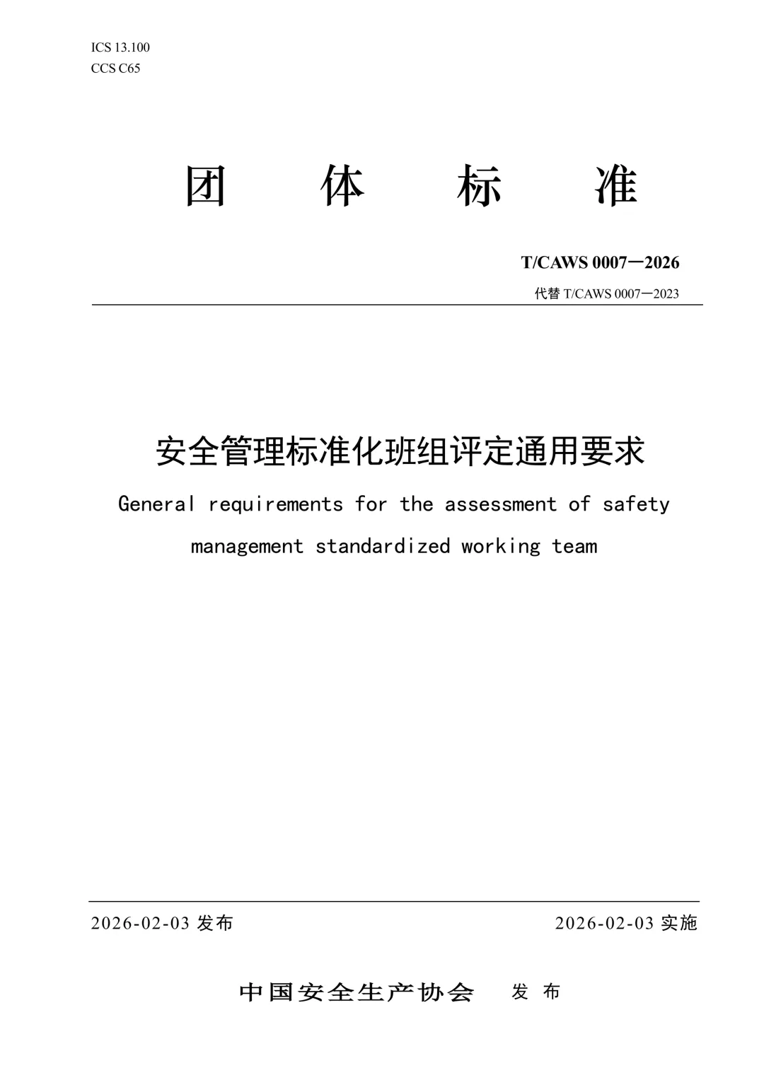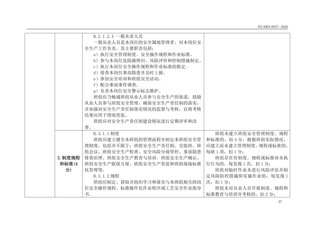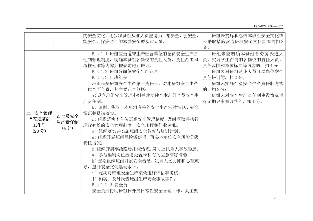 免费下载!TCAWS 0007―2026 安全管理标准化班组评定通用要求