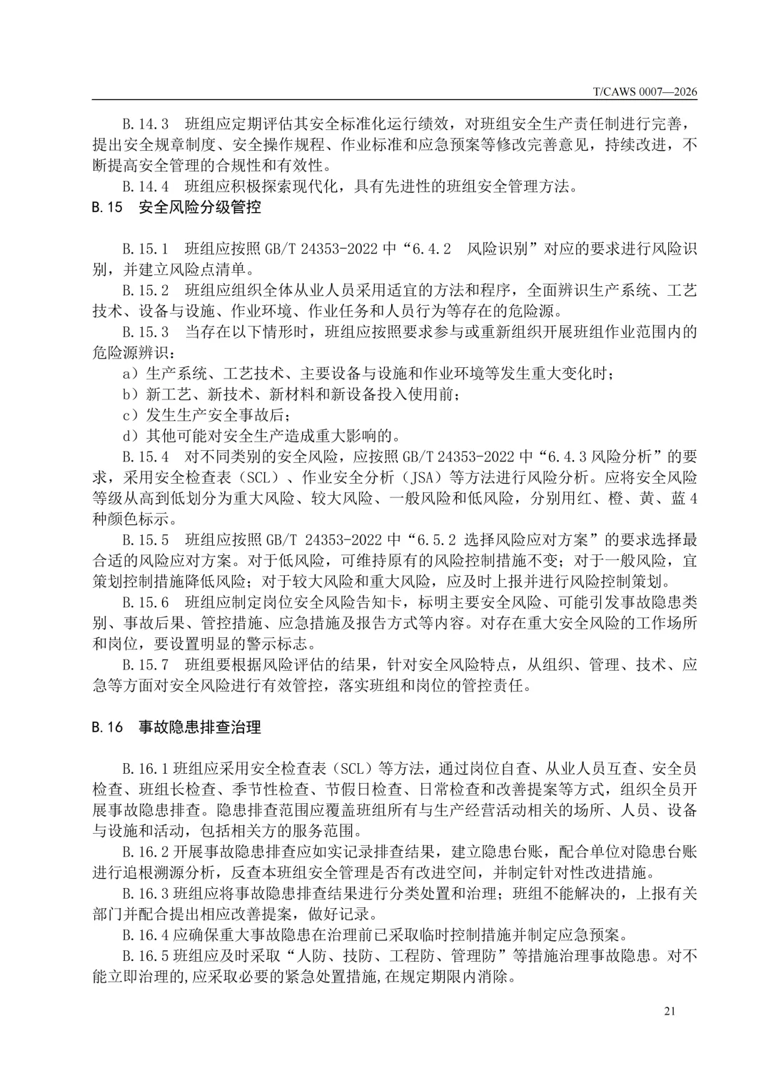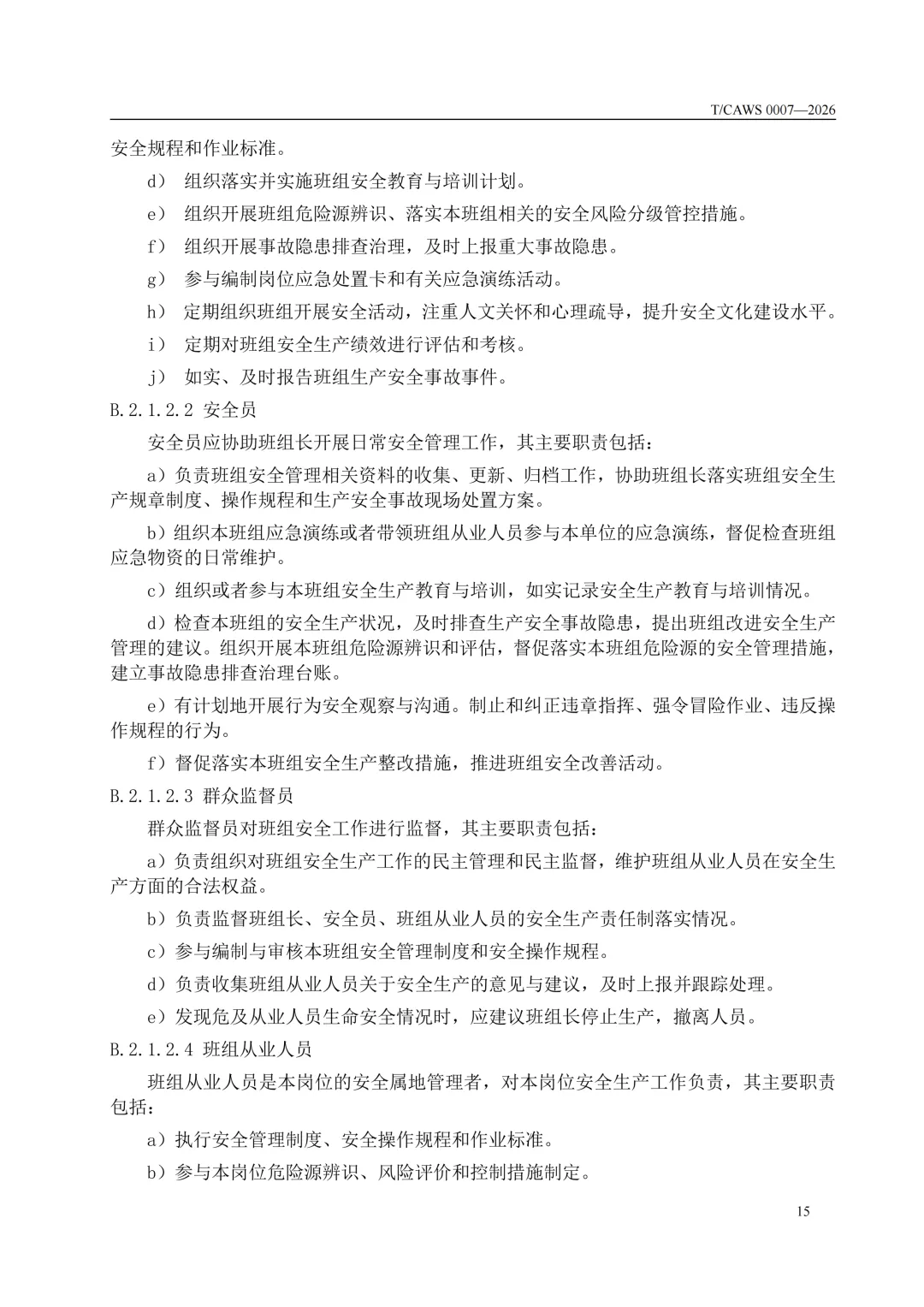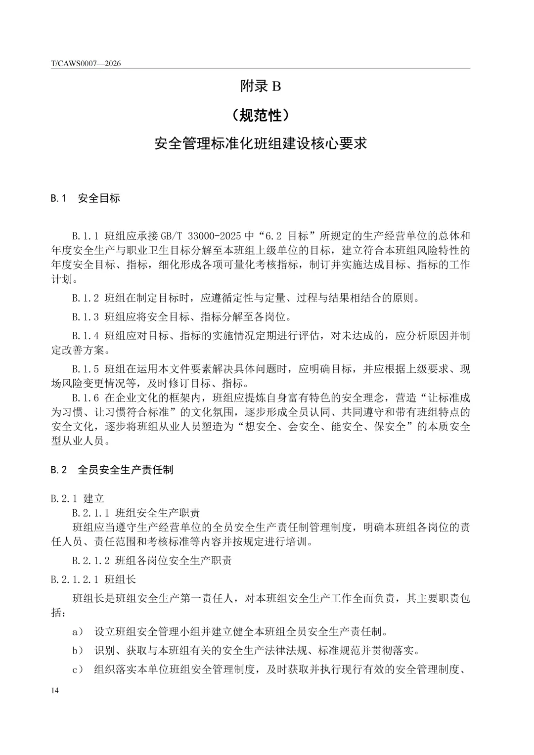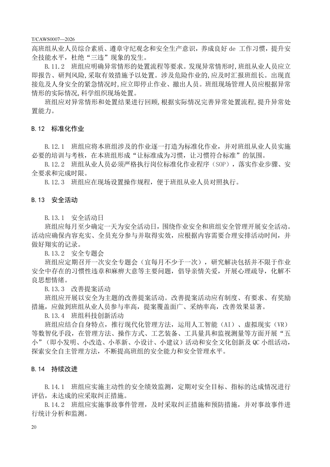 免费下载!TCAWS 0007―2026 安全管理标准化班组评定通用要求