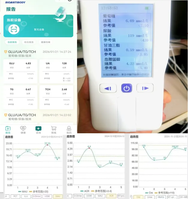 无需医院排队,快速出结果,准备+采血+检测+出值,10分钟解决,数据永久保存可分享可远程查看,检测结果数字、图表化呈现,更直观体现健康指标及变化趋势,更方便慢病管理和患者服务。