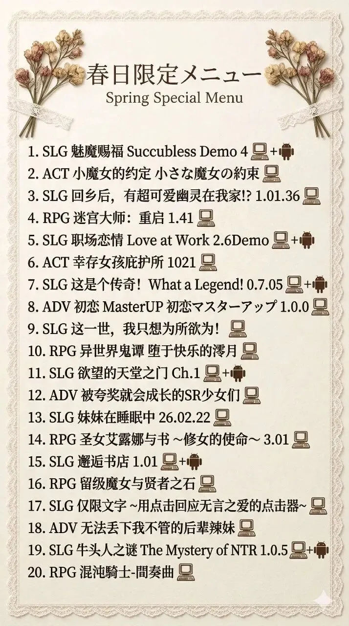 M魔赐福vDemo4【PC+安卓】这份神秘馈赠,藏着心动与抉择的双向羁绊 【动态】 这里是天堂。 海滩 以及来自各大魔法大陆的美女们 这是独属于你的假期 – 而且你正在用“钉子”把它“固定”下来 好吧,你其实是在享受它 但是你没觉得这座度假村的员工们都过于友善了吗? 而且你也会知道,你早就是目标了! 等下,那个沙滩排球是刚刚朝你抛媚眼了吗? 大家是真的“参与”到卡牌游戏中去了 比如,喜欢的有点过头了 整理好你手中的牌,然后做出行动! 每个回合都将揭开一层新的面纱 —一切谜题答案的面纱 … 同时还有你对手身上的衣服 哦对了 这有股奇特的诅咒之力正流淌在你的体内 觉得不错? 这只是其中一小部分而已 好吧,这或许有些令人疑惑 你想要答案,不是吗? 只有一种办法可以知道: 在刀尖上起舞 – 不论发生什么,对么? 关&㊗️♛后👀思♞🆕か点击为爱发电🈲€裙白฿嫖