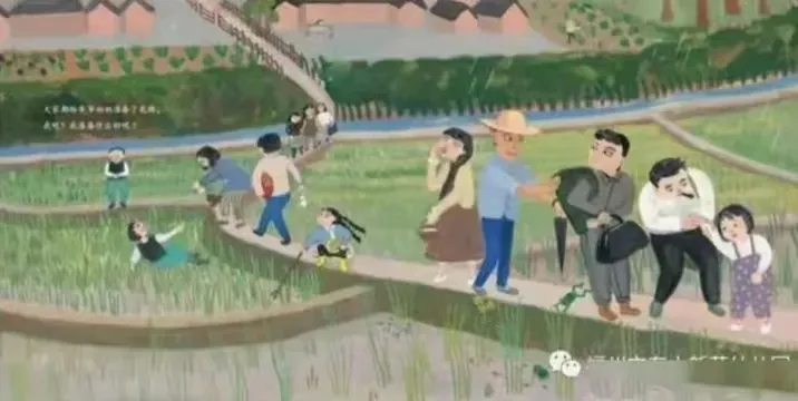 在颠簸的道路上担惊受怕,在田边、路边采摘美丽的野花,在乡间逗狗、追鹅、看猪,当然,更重要的,却是与家人们的相聚。作品巧妙地设置悬念,直到后面所有人一起上山,我们才知道全家人其实是去给爷爷奶奶扫墓,整个故事里传递着作者对于民俗文化,对于家族,对于团圆与思念的诸多思考。